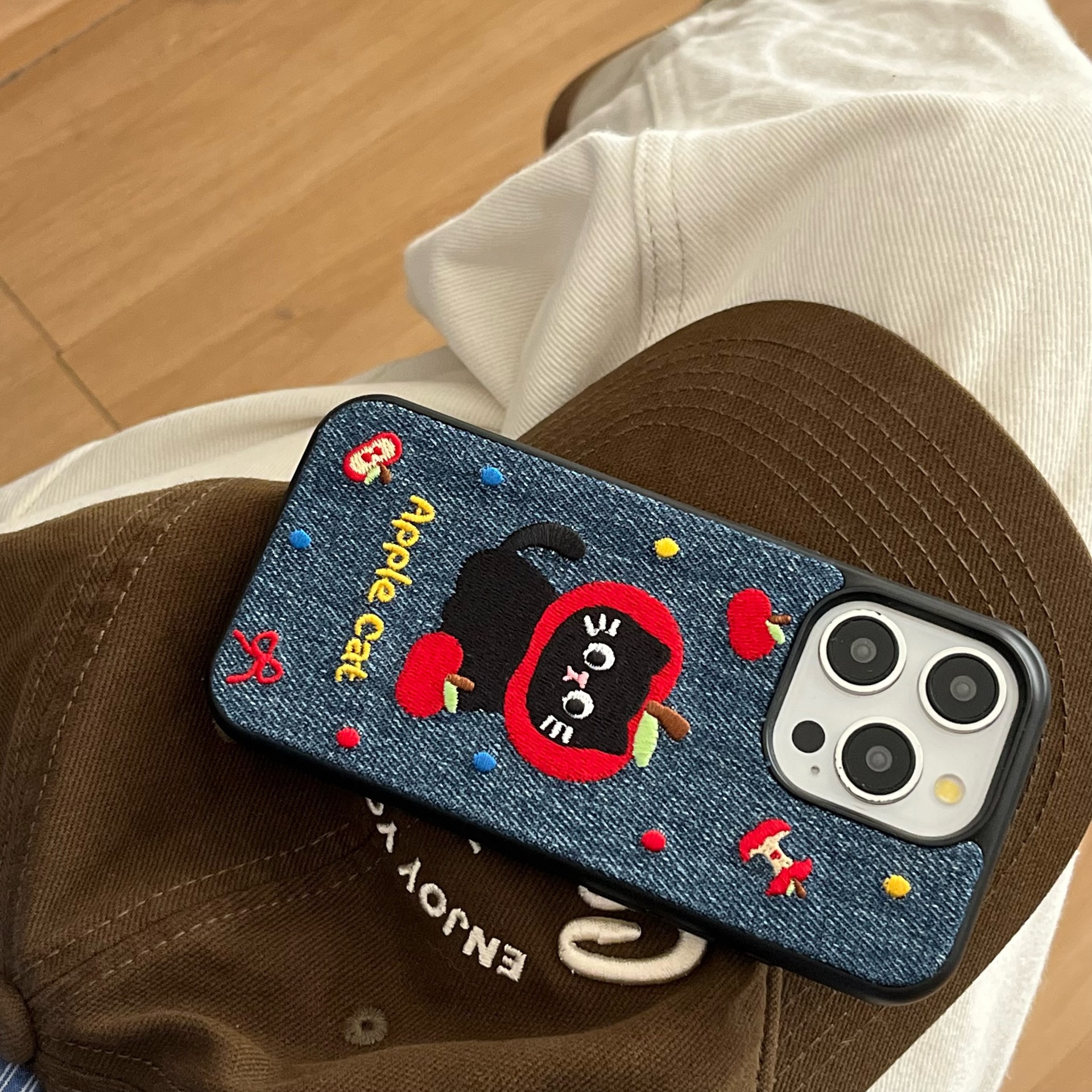 Denim Embroidered Cat Cartoon Phone Case